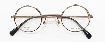 「モービレ・n」は単式の跳ね上げメガネで、蝶番部分もフラットなパーツを使って目立ちにくくなっており、正面からは、跳ね上げ部分はほとんどわからないようになっています。