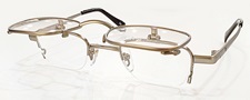マグネットを使った複式跳ね上げメガネフレーム、キャトル44は強度数のレンズも薄く仕上がり、遠近両用など累進レンズにも対応できる研究会オリジナルのウスカルフレームです。